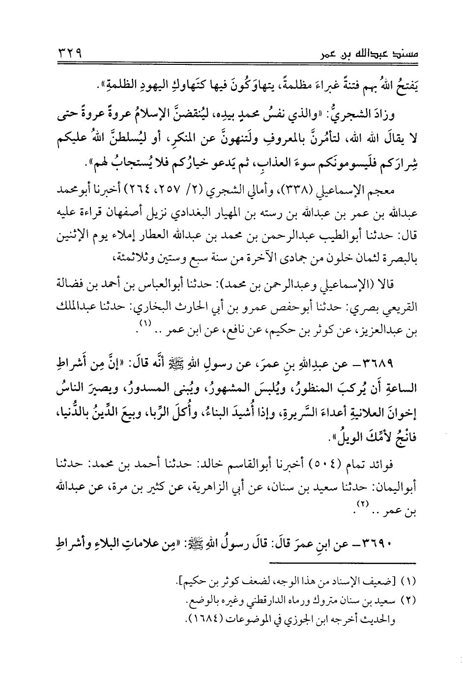 فوائد تمام (504) أخبرنا أبوالقاسم خالد: حدثنا أحمد بن محمد: حدثنا أبواليمان: حدثنا سعيد بن سنان، عن أبي الزاهرية، عن كثير بن مرة، عن عبدالله بن عمر .. (¬2).