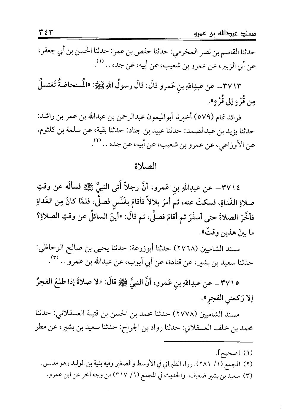 3715 - عن عبدِاللهِ بنِ عَمرو، أنَّ النبيَّ صلى الله عليه وسلم قالَ: «لا صلاةَ إذا طلعَ الفجرُ إلا رَكعتي الفجرِ».