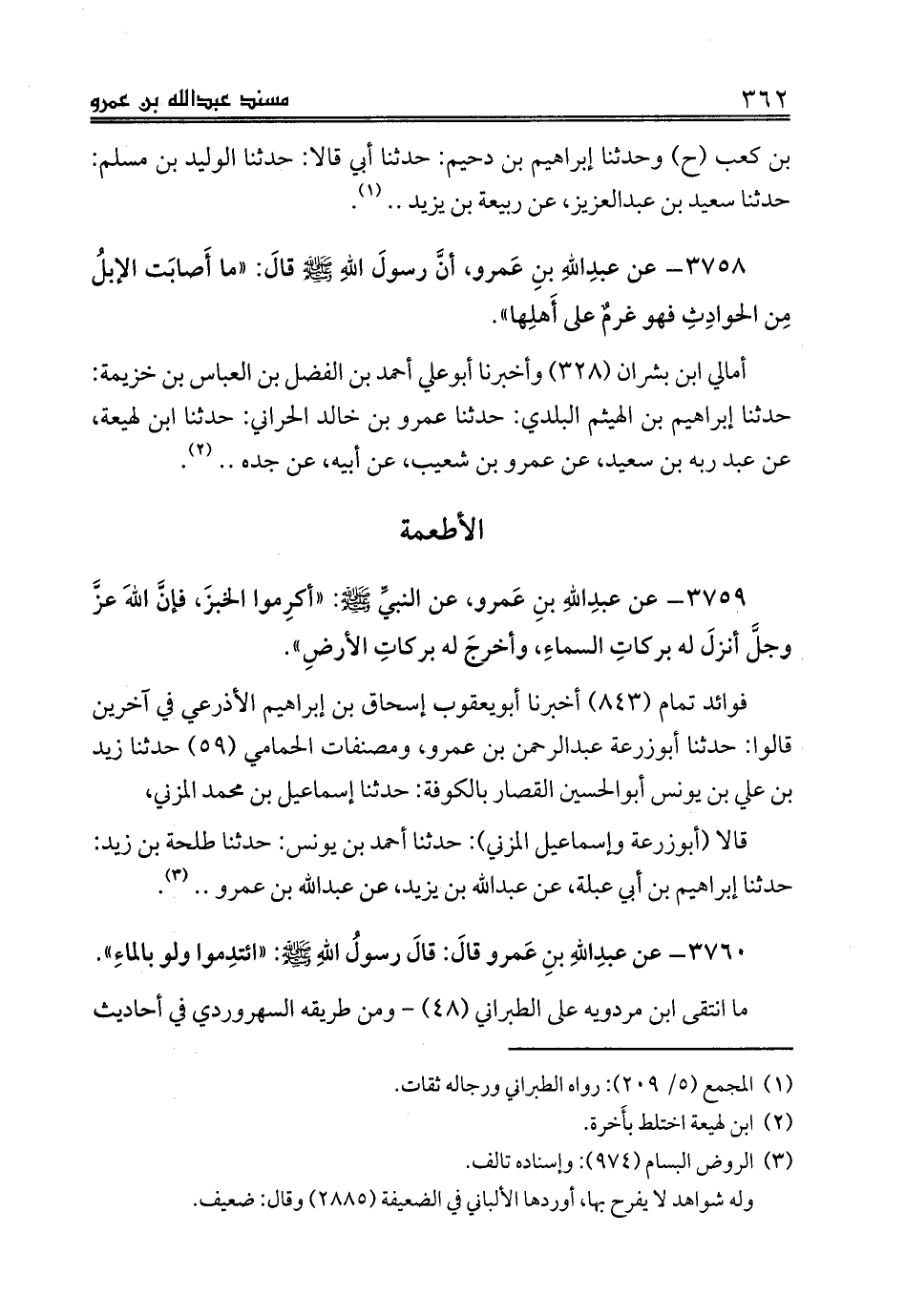 3760 - عن عبدِاللهِ بنِ عَمرو قالَ: قالَ رسولُ اللهِ صلى الله عليه وسلم: «ائتدِموا ولو بالماءِ».
