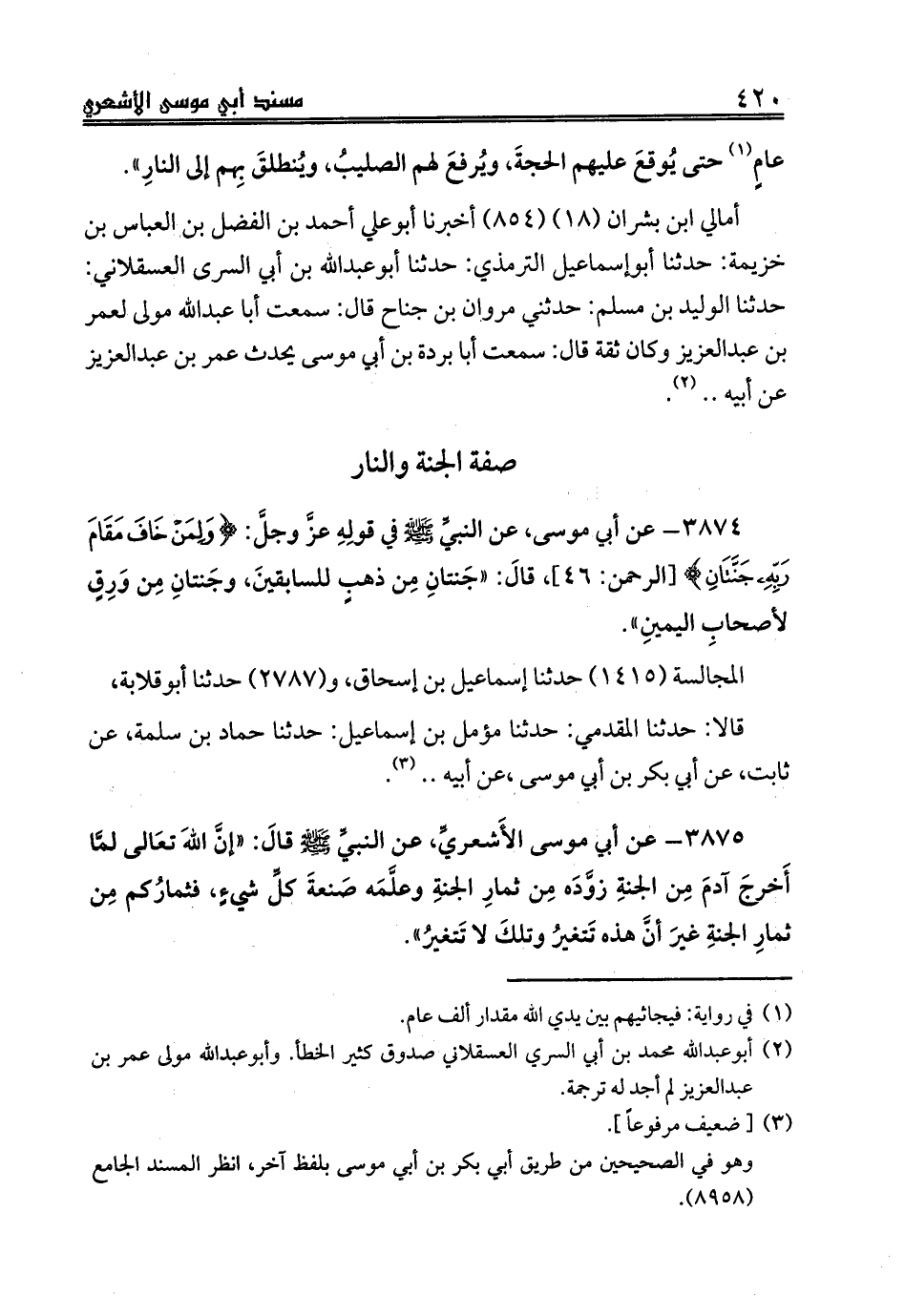قالا: حدثنا المقدمي: حدثنا مؤمل بن إسماعيل: حدثنا حماد بن سلمة، عن ثابت، عن أبي بكر بن أبي موسى، عن أبيه .. (¬3).