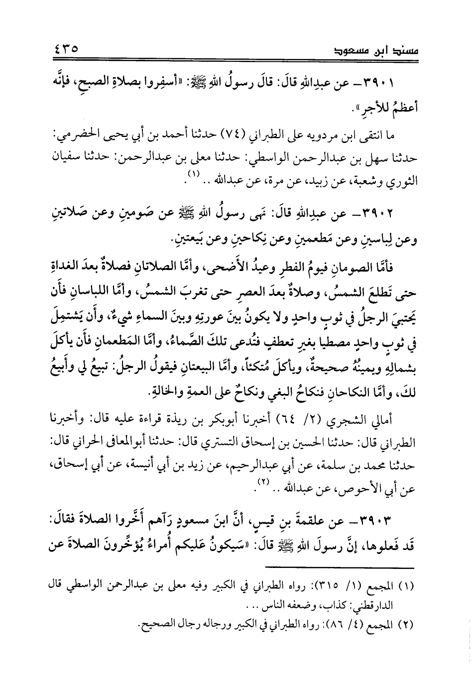 3901 - عن عبدِاللهِ قالَ: قالَ رسولُ اللهِ صلى الله عليه وسلم: «أسفِروا بصلاةِ الصبحِ، فإنَّه أعظمُ للأجرِ».