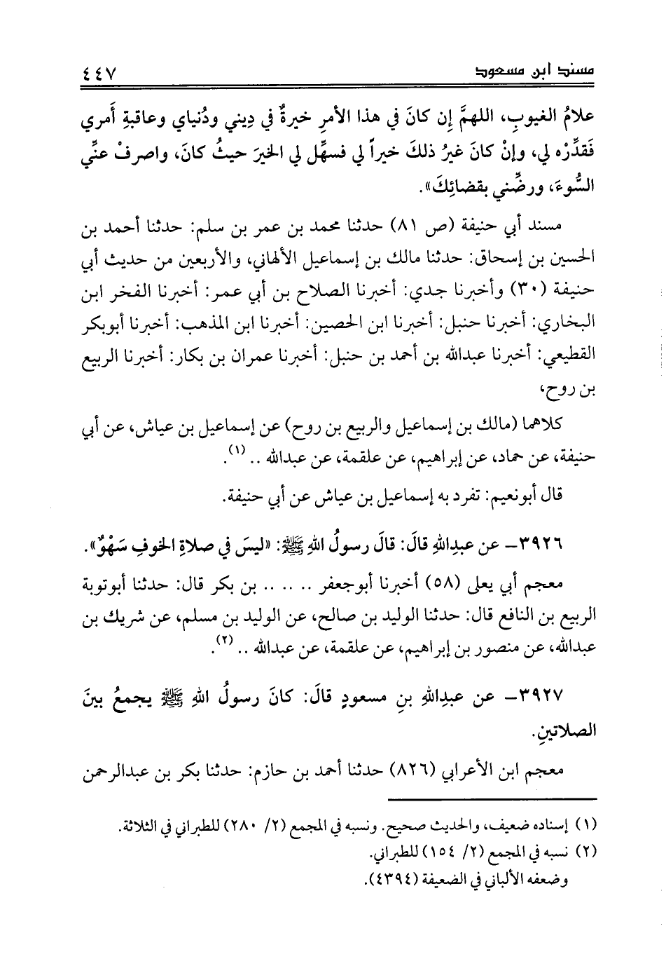 كلاهما (مالك بن إسماعيل والربيع بن روح) عن إسماعيل بن عياش، عن أبي حنيفة، عن حماد، عن إبراهيم، عن علقمة، عن عبدالله .. (¬1).