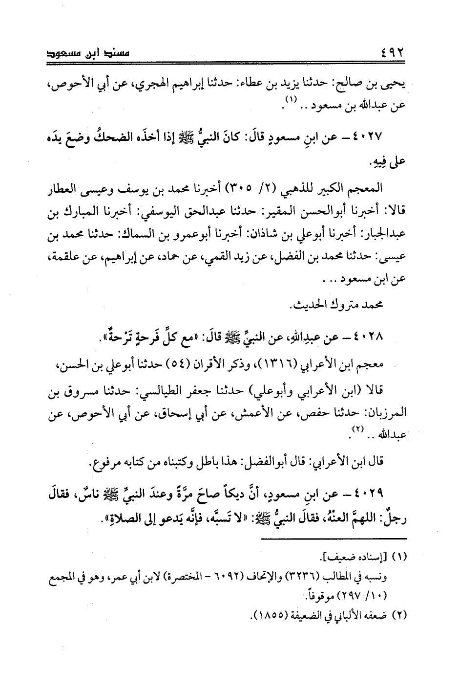 يحيى بن صالح: حدثنا يزيد بن عطاء: حدثنا إبراهيم الهجري، عن أبي الأحوص، عن عبدالله بن مسعود .. (¬1).