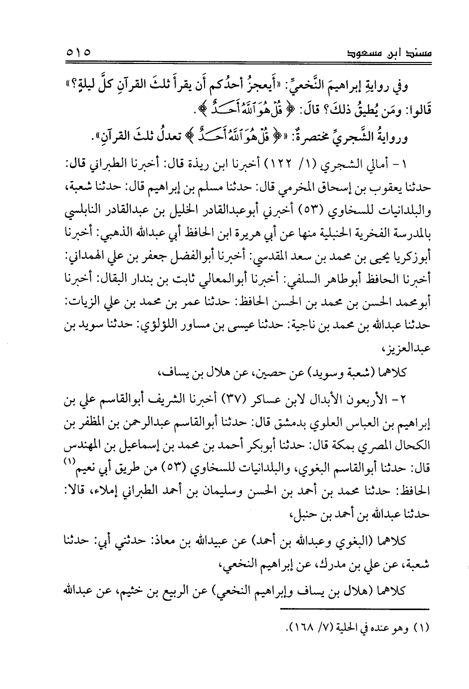 كلاهما (البغوي وعبدالله) عن عبيدالله بن معاذ: حدثني أبي: حدثنا شعبة، عن علي بن مدرك، عن إبراهيم النخعي،