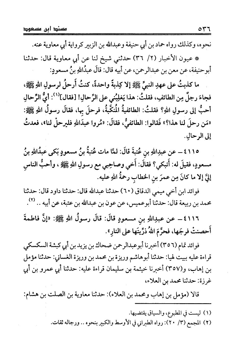فوائد ابن أخي ميمي الدقاق (60) حدثنا عبدالله قال: حدثنا داود قال: حدثنا محمد بن ربيعة قال: حدثنا أبوعميس، عن عون بن عبدالله بن عتبة، عن أبيه .. (¬2).