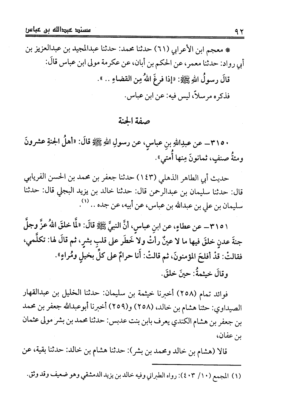 فوائد تمام (258) أخبرنا خيثمة بن سليمان: حدثنا الخليل بن عبدالقهار الصيداوي: حثنا هشام بن خالد، (258) و (259) أخبرنا أبوعبدالله جعفر بن محمد بن جعفر بن هشام الكندي يعرف بابن بنت عدبس: حدثنا محمد بن بشر مولى عثمان بن عفان،