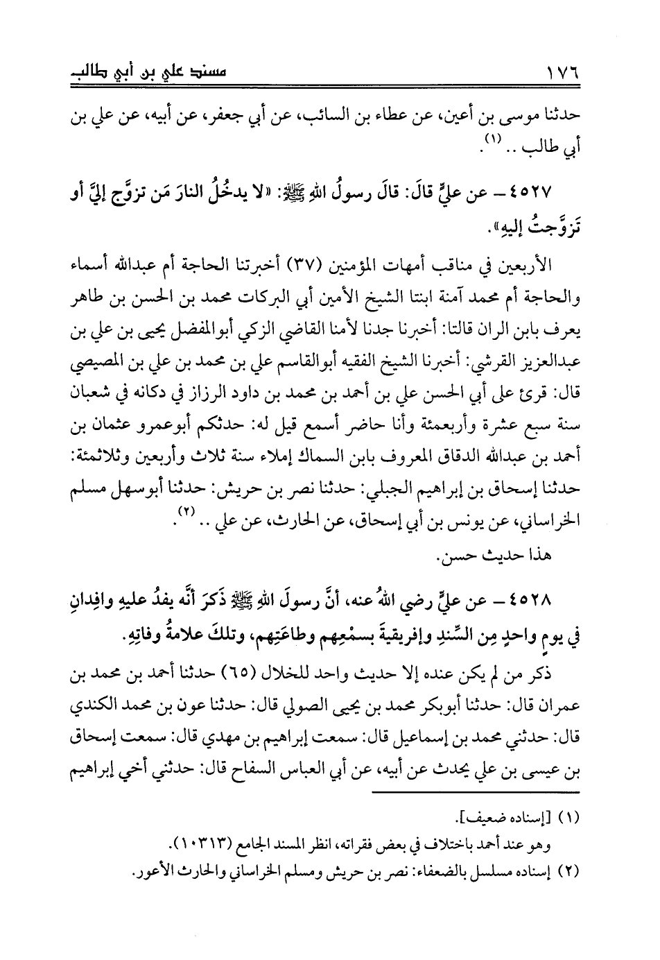 (¬2) إسناده مسلسل بالضعفاء: نصر بن حريش ومسلم الخراساني والحارث الأعور.