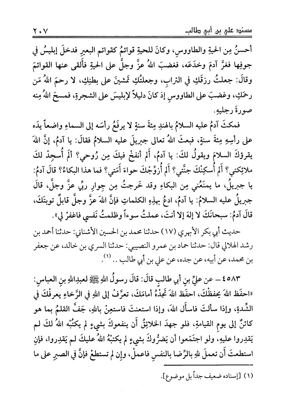 حديث أبي بكر الأبهري (17) حدثنا محمد بن الحسين الأشناني: حدثنا أحمد بن رشد الهلالي قال: حدثنا حماد بن عمرو النصيبي: حدثنا السري بن خالد، عن جعفر بن محمد، عن أبيه، عن جده، عن علي بن أبي طالب .. (¬1).