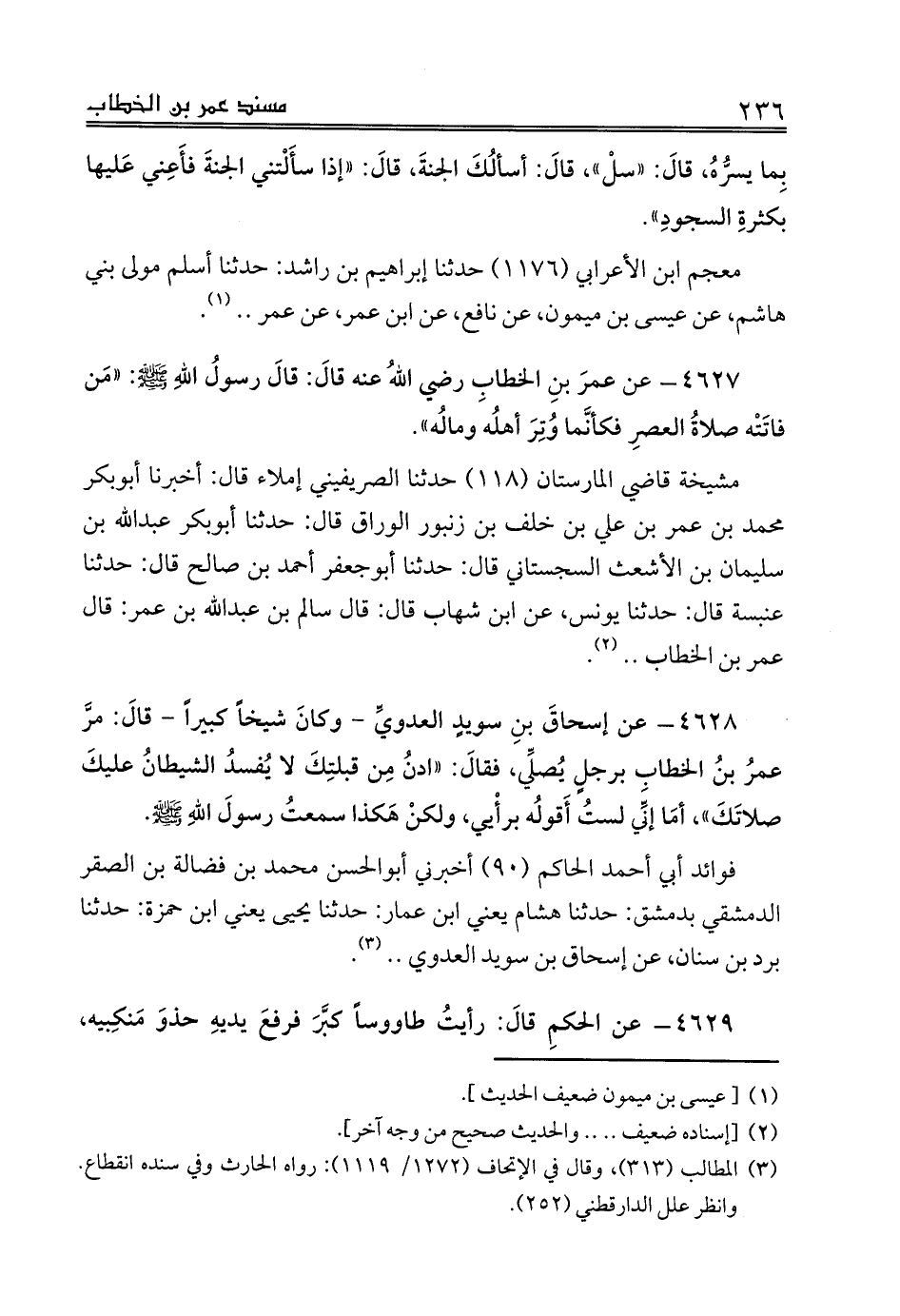 (¬3) المطالب (313)، وقال في الإتحاف (1272/ 1119): رواه الحارث وفي سنده انقطاع. وانظر علل الدارقطني (252).