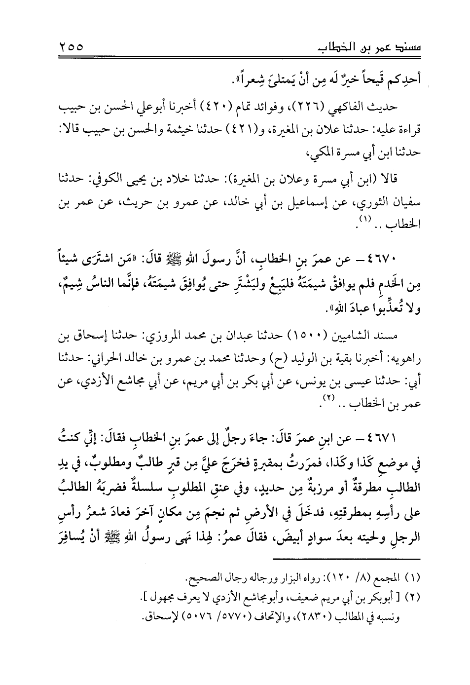 قالا (ابن أبي مسرة وعلان بن المغيرة): حدثنا خلاد بن يحيى الكوفي: حدثنا سفيان الثوري، عن إسماعيل بن أبي خالد، عن عمرو بن حريث، عن عمر بن الخطاب .. (¬1).