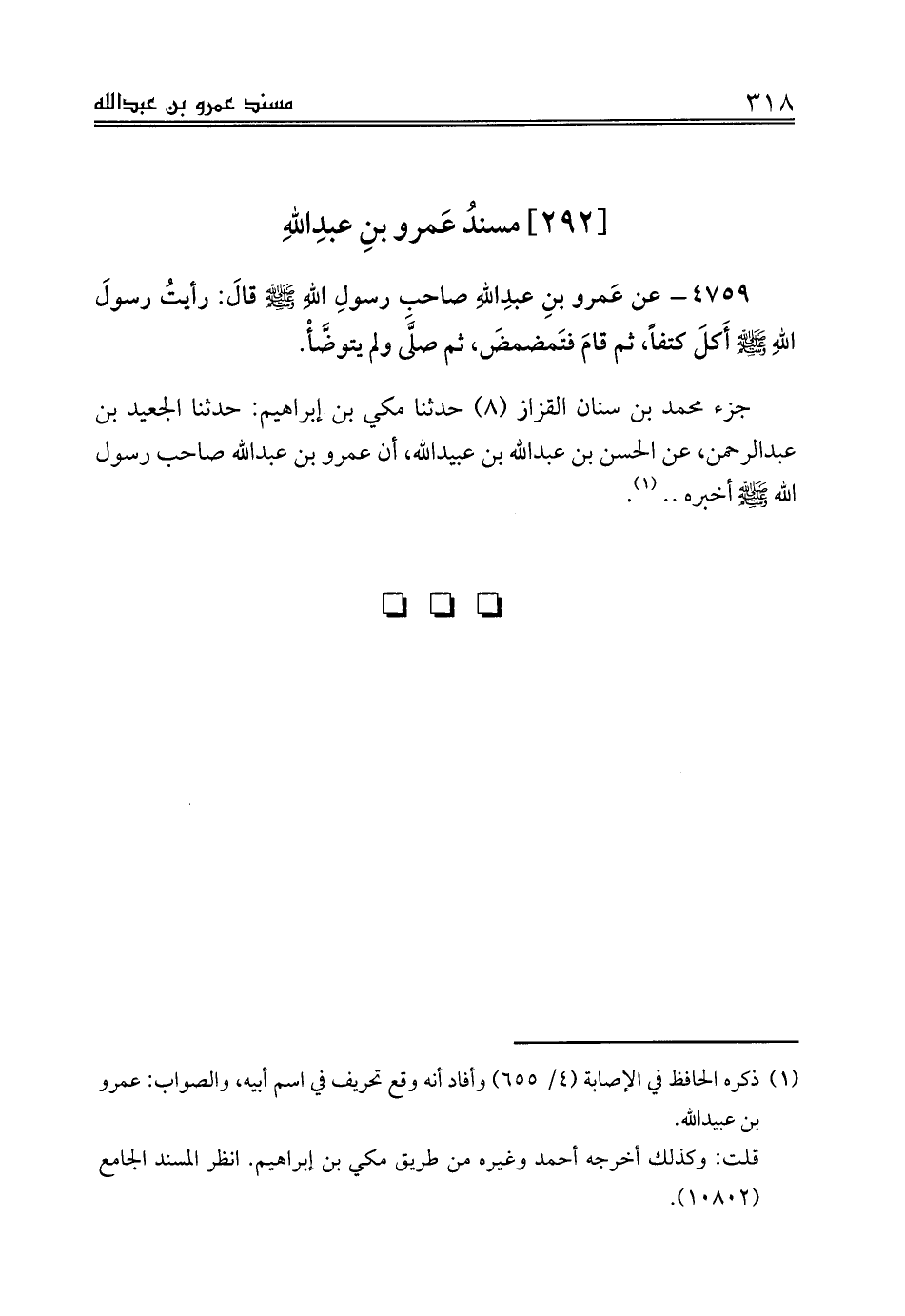 [292] مسندُ عَمرو بنِ عبدِاللهِ