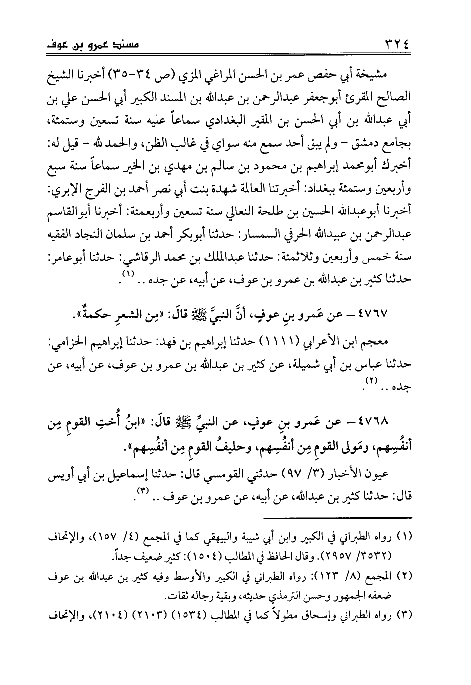 4768 - عن عَمرو بنِ عوفٍ، عن النبيِّ صلى الله عليه وسلم قالَ: «ابنُ أُختِ القومِ مِن أنفُسِهم، ومَولى القومِ مِن أنفُسِهم، وحليفُ القومِ مِن أنفُسِهم».