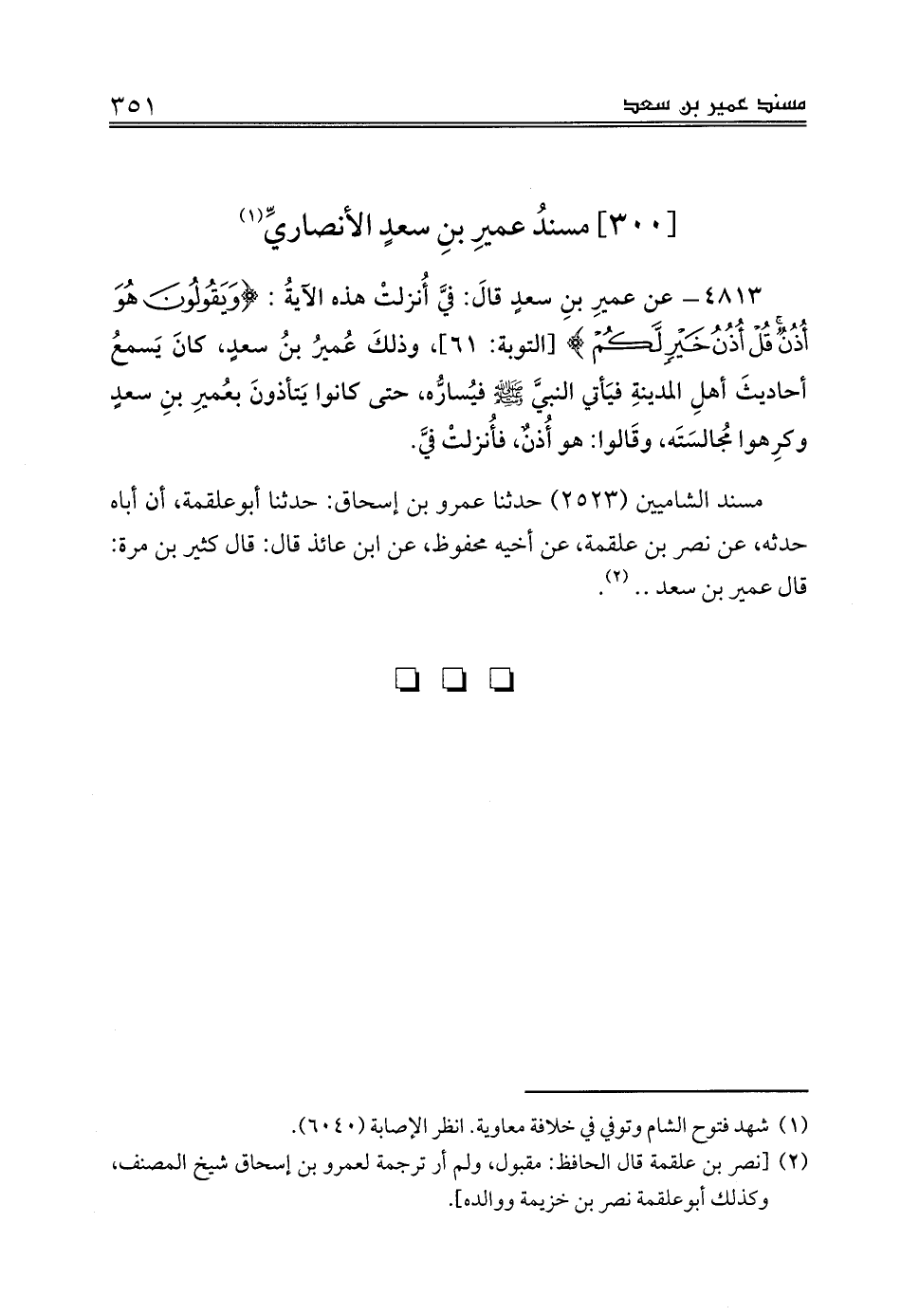 [300] مسندُ عميرِ بنِ سعدٍ الأنصاريِّ (¬1)
