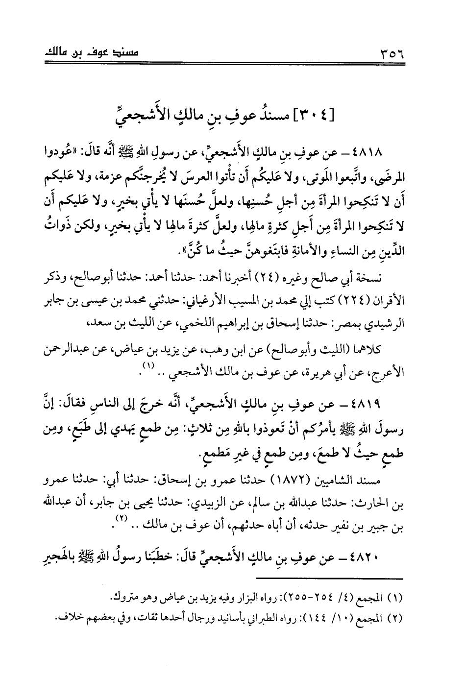 [304] مسندُ عوفِ بنِ مالكٍ الأَشجعيِّ