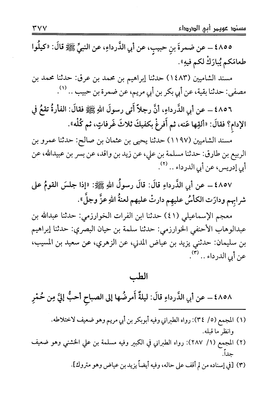 معجم الإسماعيلي (41) حدثنا ابن الفرات الخوارزمي: حدثنا عبدالله بن عبدالوهاب الأحنفي الخوارزمي: حدثنا سلمة بن حيان البصري: حدثنا إبراهيم بن سليمان: حدثني يزيد بن عياض المدني، عن الزهري، عن سعيد بن المسيب، عن أبي الدرداء .. (¬3).