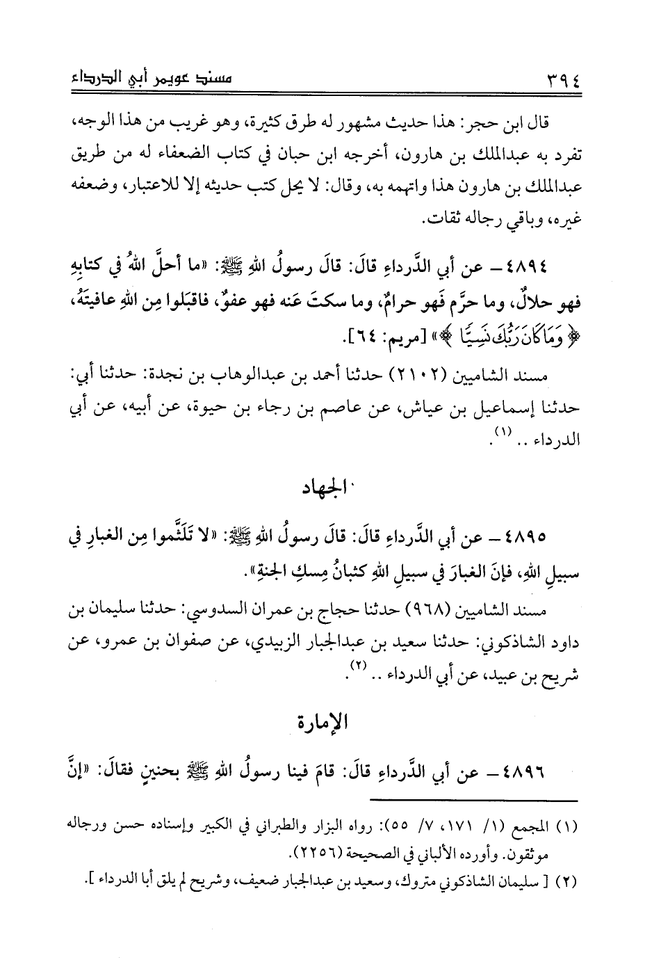 (¬2) [سليمان الشاذكوني متروك، وسعيد بن عبدالجبار ضعيف، وشريح لم يلق أبا الدرداء].