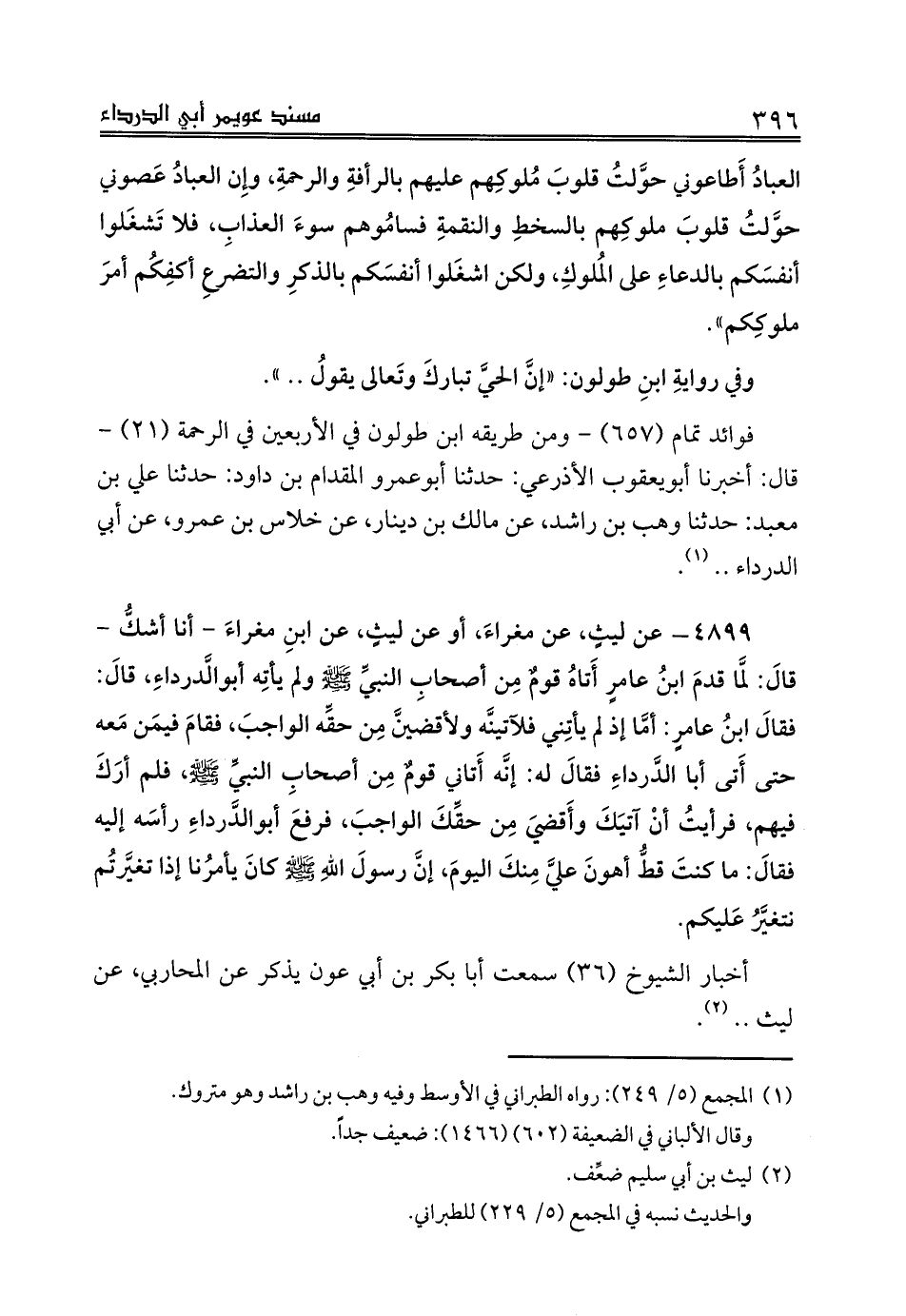 فوائد تمام (657) - ومن طريقه ابن طولون في الأربعين في الرحمة (21) - قال: أخبرنا أبويعقوب الأذرعي: حدثنا أبوعمرو المقدام بن داود: حدثنا علي بن معبد: حدثنا وهب بن راشد، عن مالك بن دينار، عن خلاس بن عمرو، عن أبي الدرداء .. (¬1).