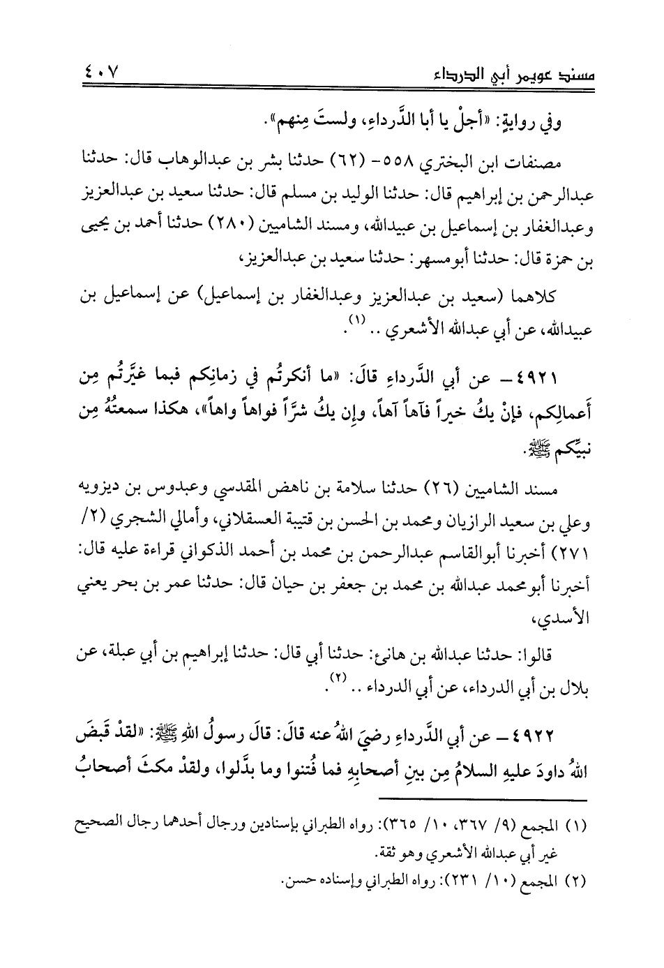 (¬1) المجمع (9/ 367، 10/ 365): رواه الطبراني بإسنادين ورجال أحدهما رجال الصحيح غير أبي عبدالله الأشعري وهو ثقة.