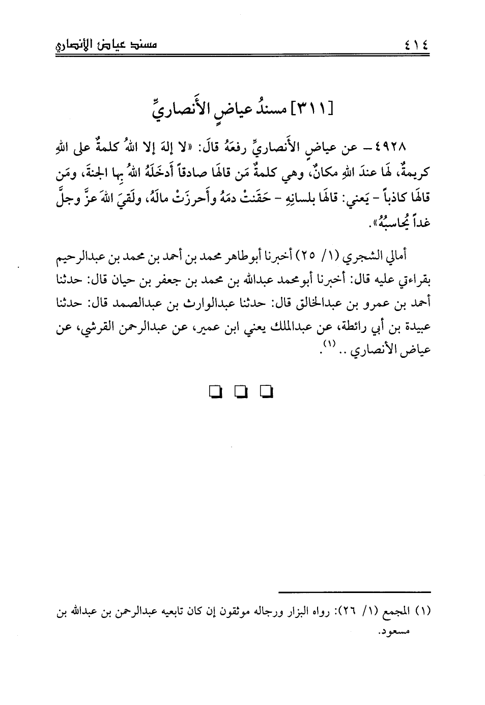 [311] مسندُ عياضٍ الأَنصاريِّ