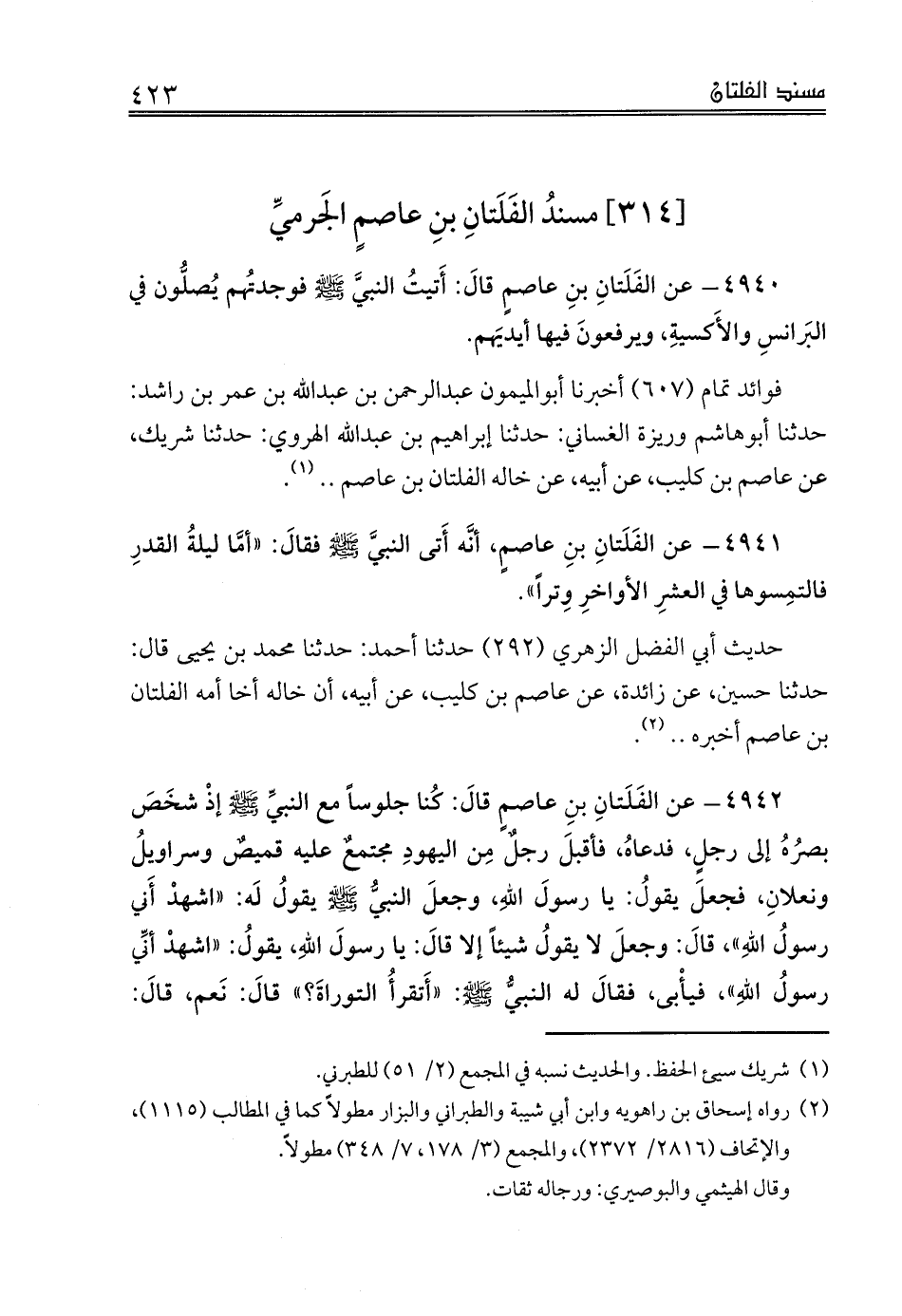[314] مسندُ الفَلَتانِ بنِ عاصمٍ الجَرميِّ