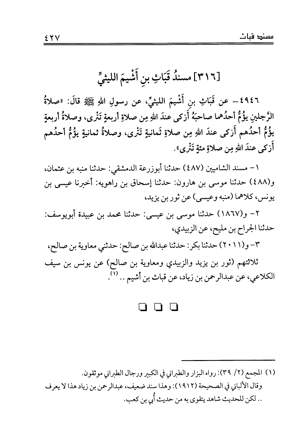 [316] مسندُ قَبَاثِ بنِ أَشْيمَ الليثيِّ