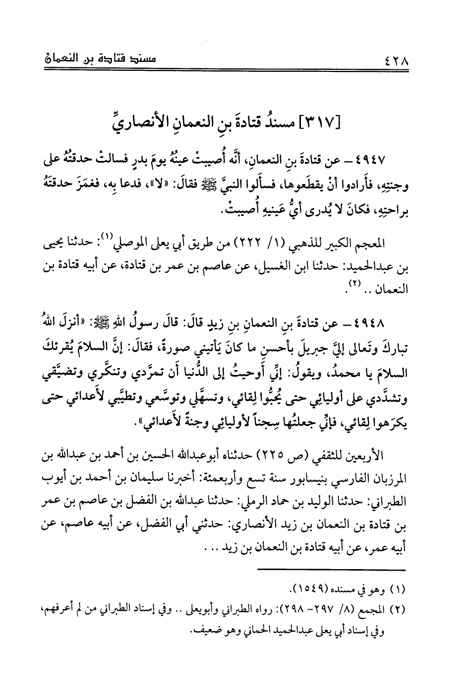 [317] مسندُ قتادةَ بنِ النعمانِ الأنصاريِّ