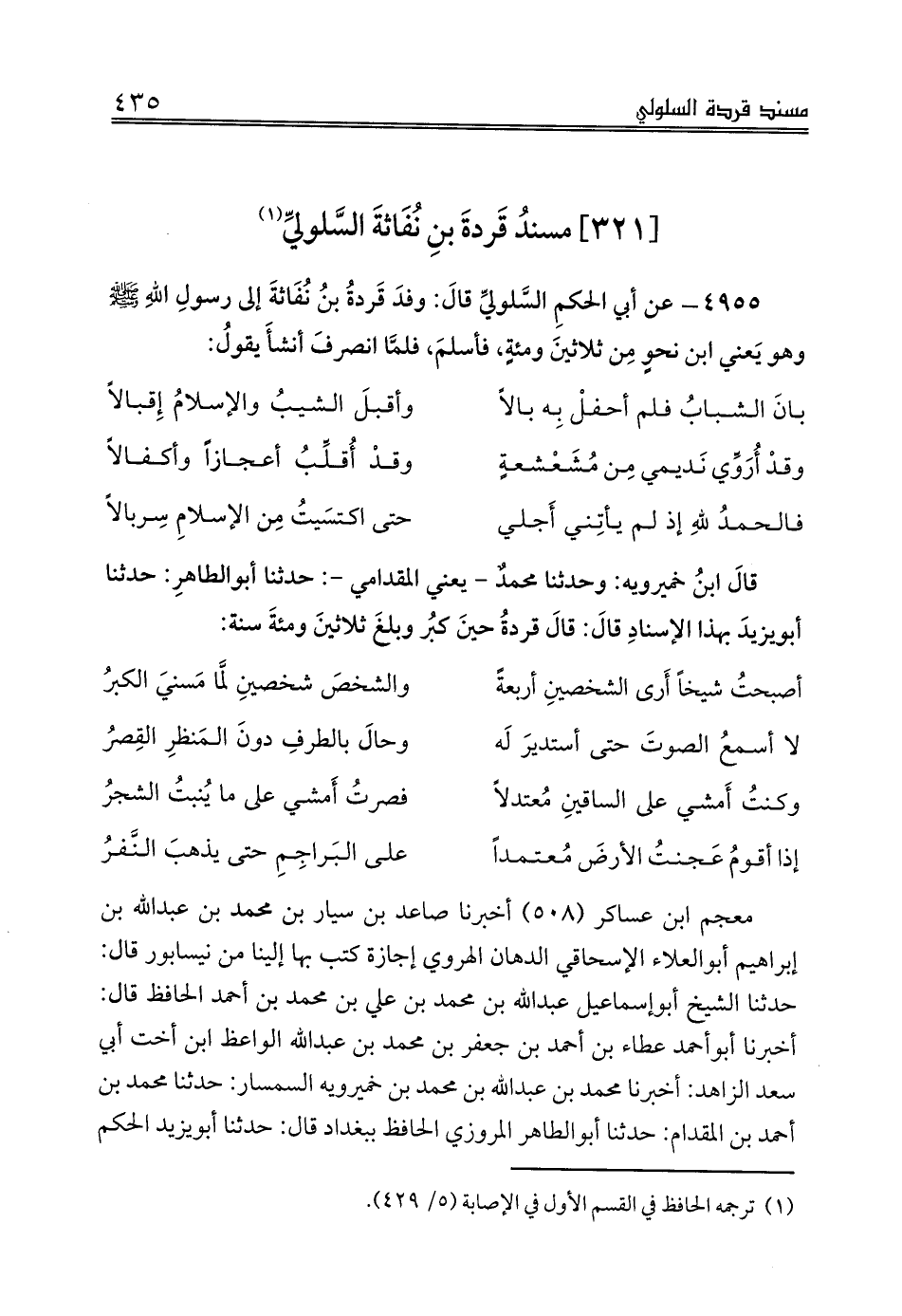 [321] مسندُ قَردةَ بنِ نُفَاثةَ السَّلوليِّ (¬1)