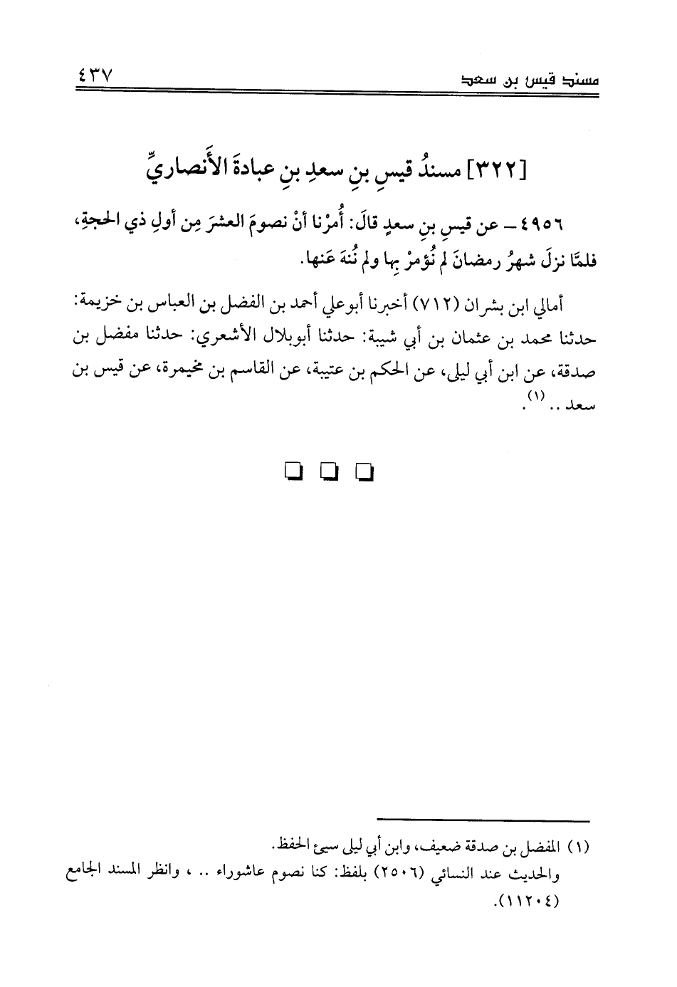 [322] مسندُ قيسِ بنِ سعدِ بنِ عبادةَ الأَنصاريِّ
