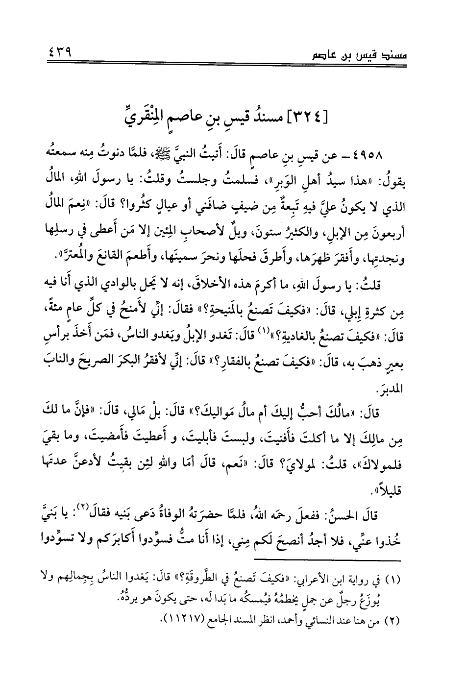 [324] مسندُ قيسِ بنِ عاصمٍ المِنْقَريِّ