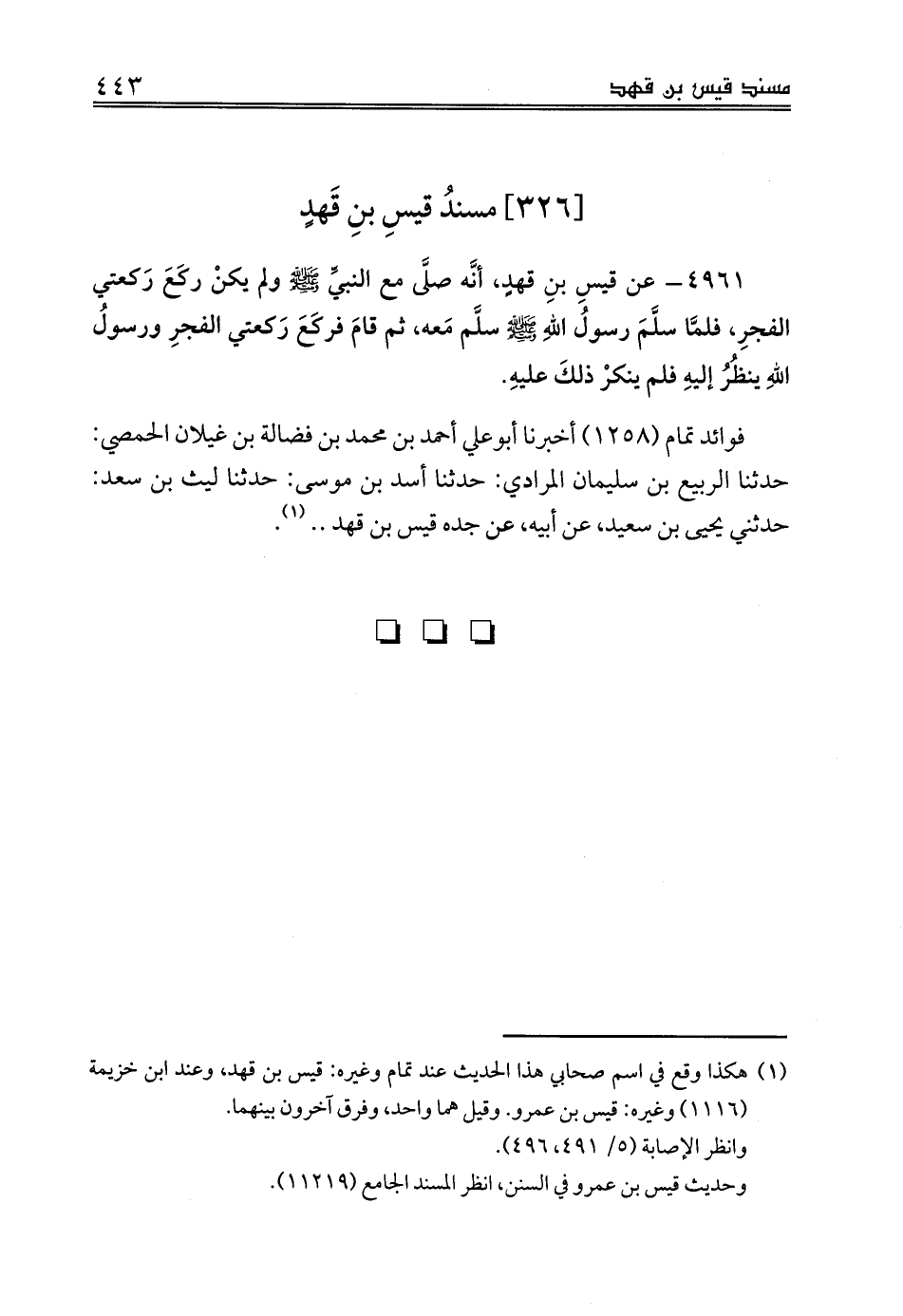 [326] مسندُ قيسِ بنِ قَهدٍ