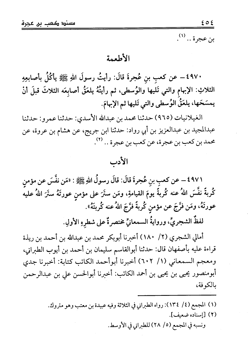 الغيلانيات (965) حدثنا محمد بن عبدالله الأسدي: حدثنا عمرو: حدثنا عبدالمجيد بن عبدالعزيز بن أبي رواد: حدثنا ابن جريج، عن هشام بن عروة، عن محمد بن كعب بن عجرة، عن كعب بن عجرة .. (¬2).