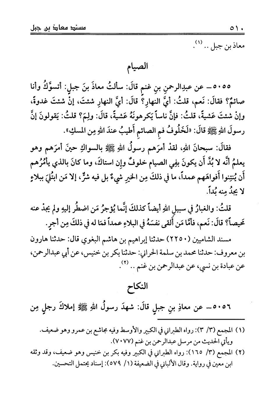 5056 - عن معاذِ بنِ جبلٍ قالَ: شهدَ رسولُ اللهِ صلى الله عليه وسلم إملاكَ رجلٍ مِن