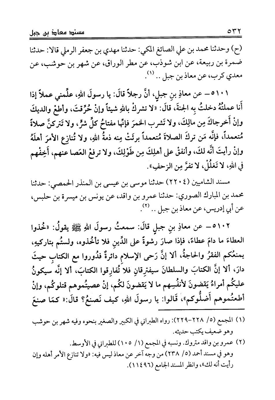 (ح) وحدثنا محمد بن علي الصائغ المكي: حدثنا مهدي بن جعفر الرملي قالا: حدثنا ضمرة بن ربيعة، عن ابن شوذب، عن مطر الوراق، عن شهر بن حوشب، عن معدي كرب، عن معاذ بن جبل .. (¬1).