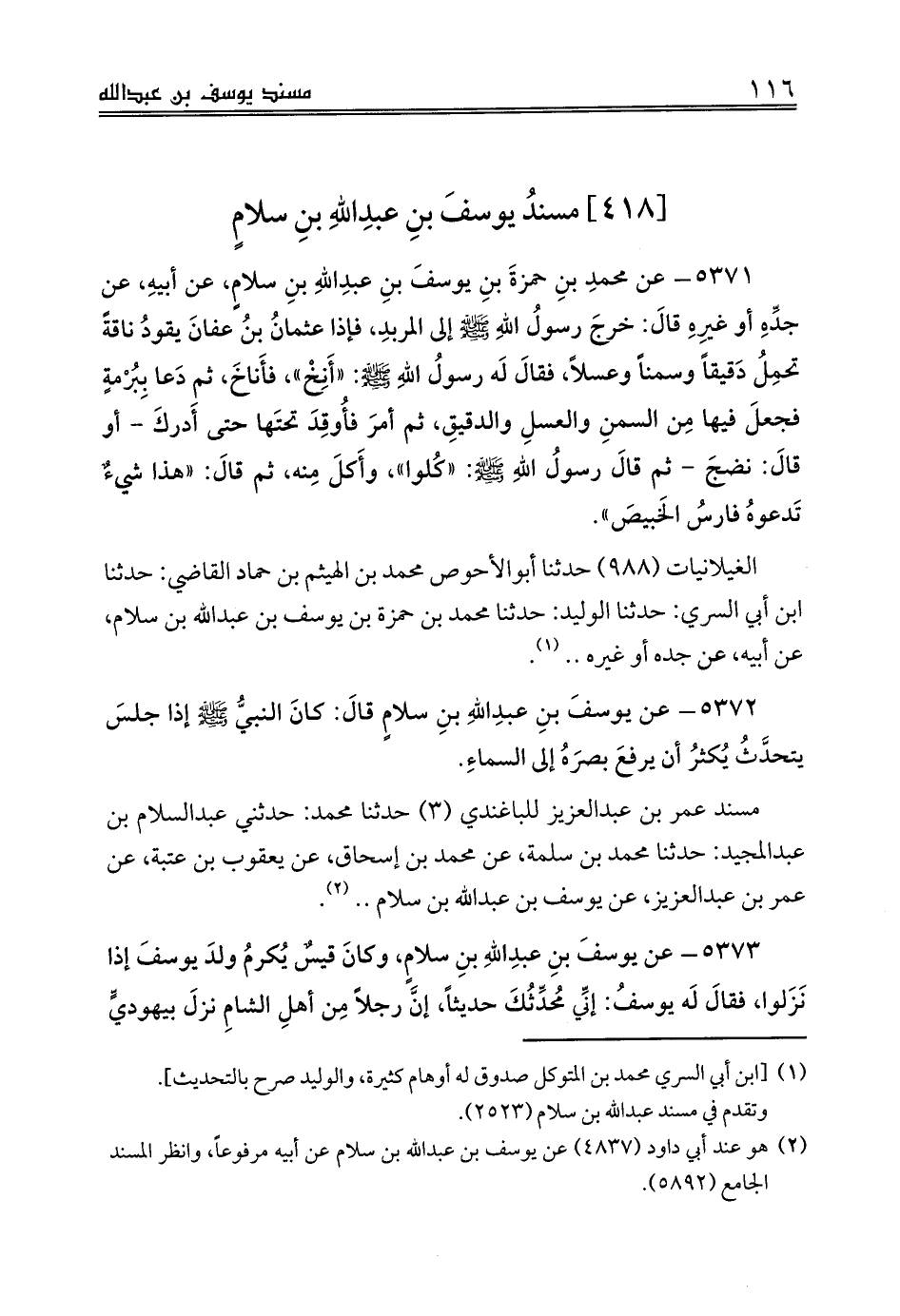 [418] مسندُ يوسفَ بنِ عبدِاللهِ بنِ سلامٍ