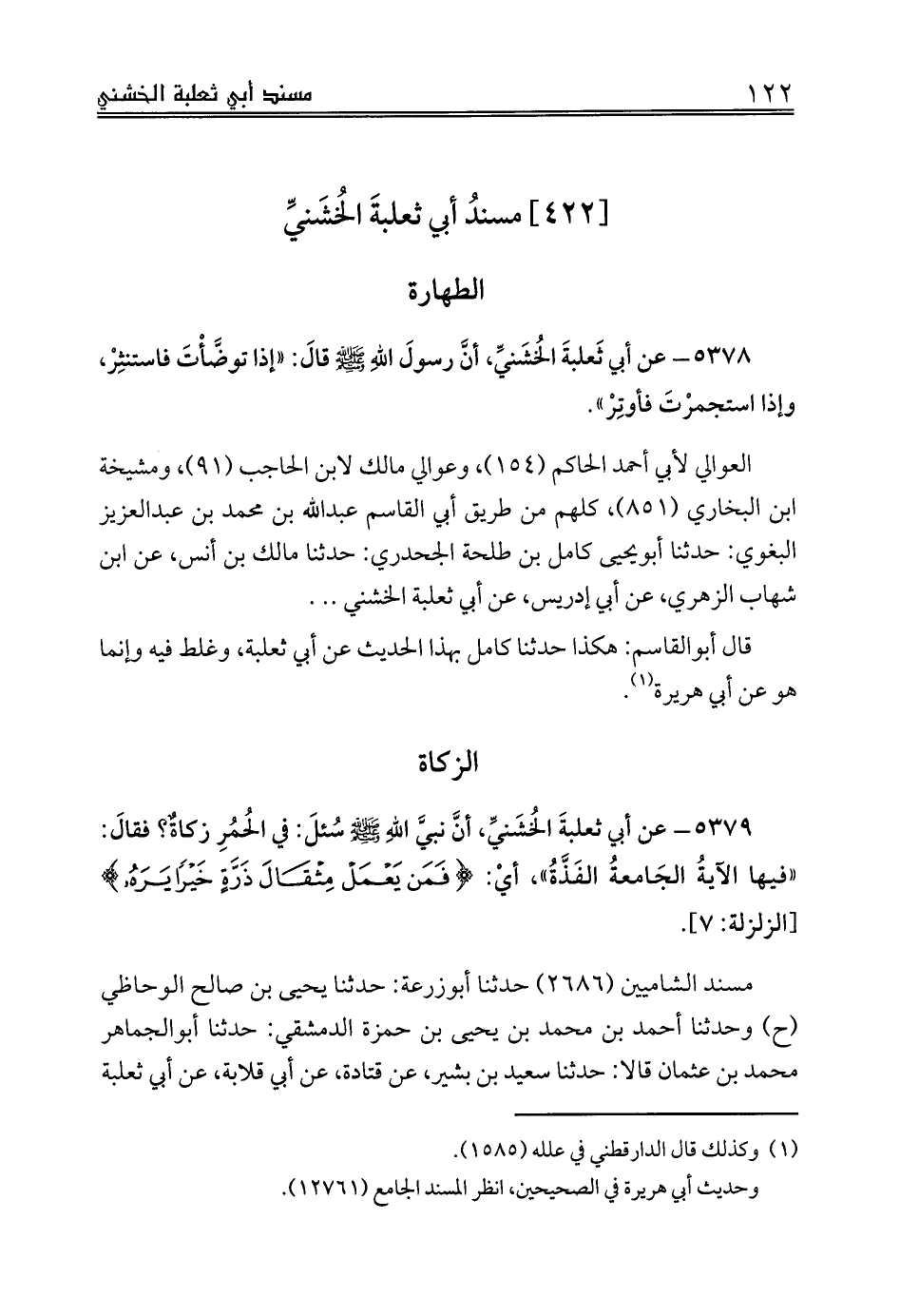 [422] مسندُ أبي ثعلبةَ الخُشَنيِّ