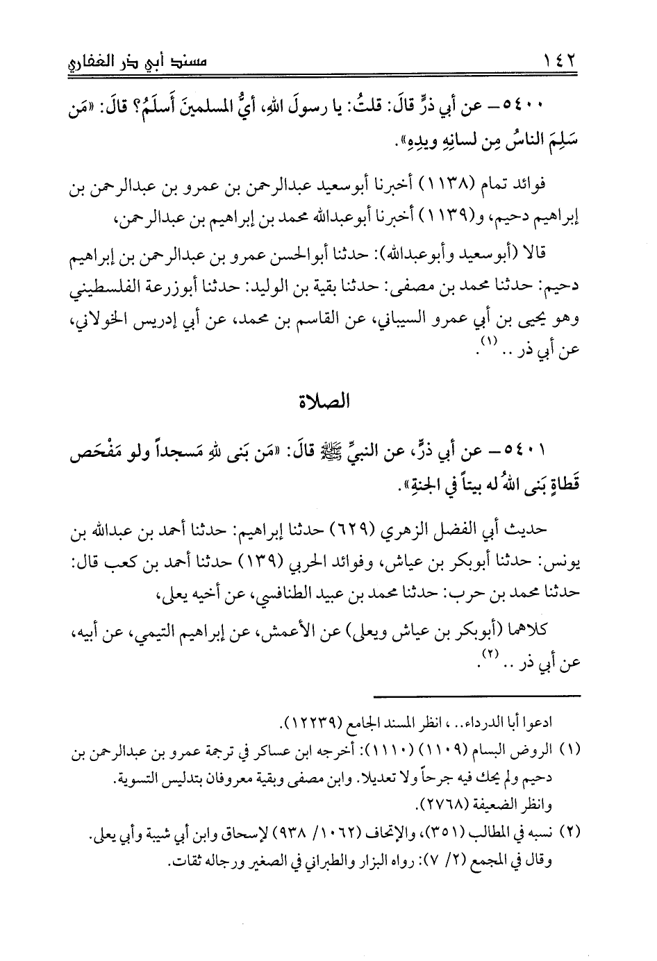 قالا (أبوسعيد وأبوعبدالله): حدثنا أبوالحسن عمرو بن عبدالرحمن بن إبراهيم دحيم: حدثنا محمد بن مصفى: حدثنا بقية بن الوليد: حدثنا أبوزرعة الفلسطيني وهو يحيى بن أبي عمرو السيباني، عن القاسم بن محمد، عن أبي إدريس الخولاني، عن أبي ذر .. (¬1).