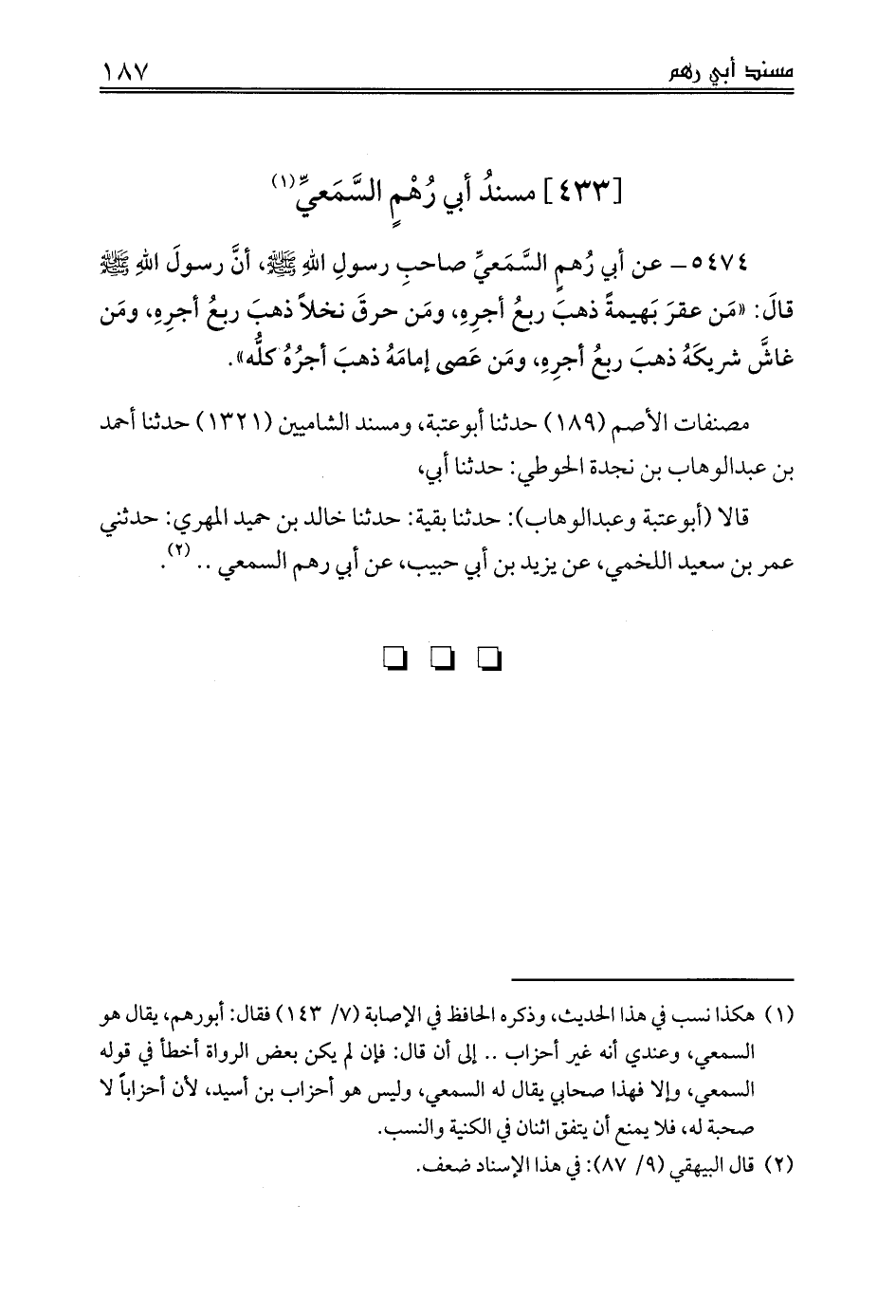 [433] مسندُ أبي رُهْمٍ السَّمَعيِّ (¬1)