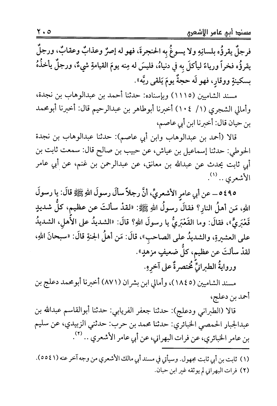 قالا (الطبراني ودعلج): حدثنا جعفر الفريابي: حدثنا أبوالقاسم عبدالله بن عبدالجبار الحمصي الخبائري: حدثنا محمد بن حرب: حدثني الزبيدي، عن سليم بن عامر الخبائري، عن فرات البهراني، عن أبي عامر الأشعري .. (¬2).