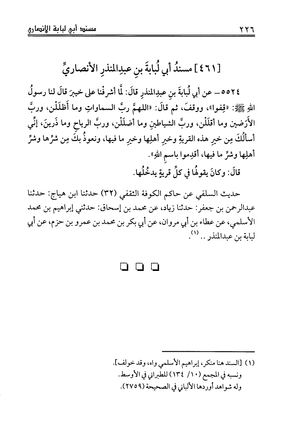 [461] مسندُ أبي لُبابةَ بنِ عبدِالمنذرِ الأنصاريِّ