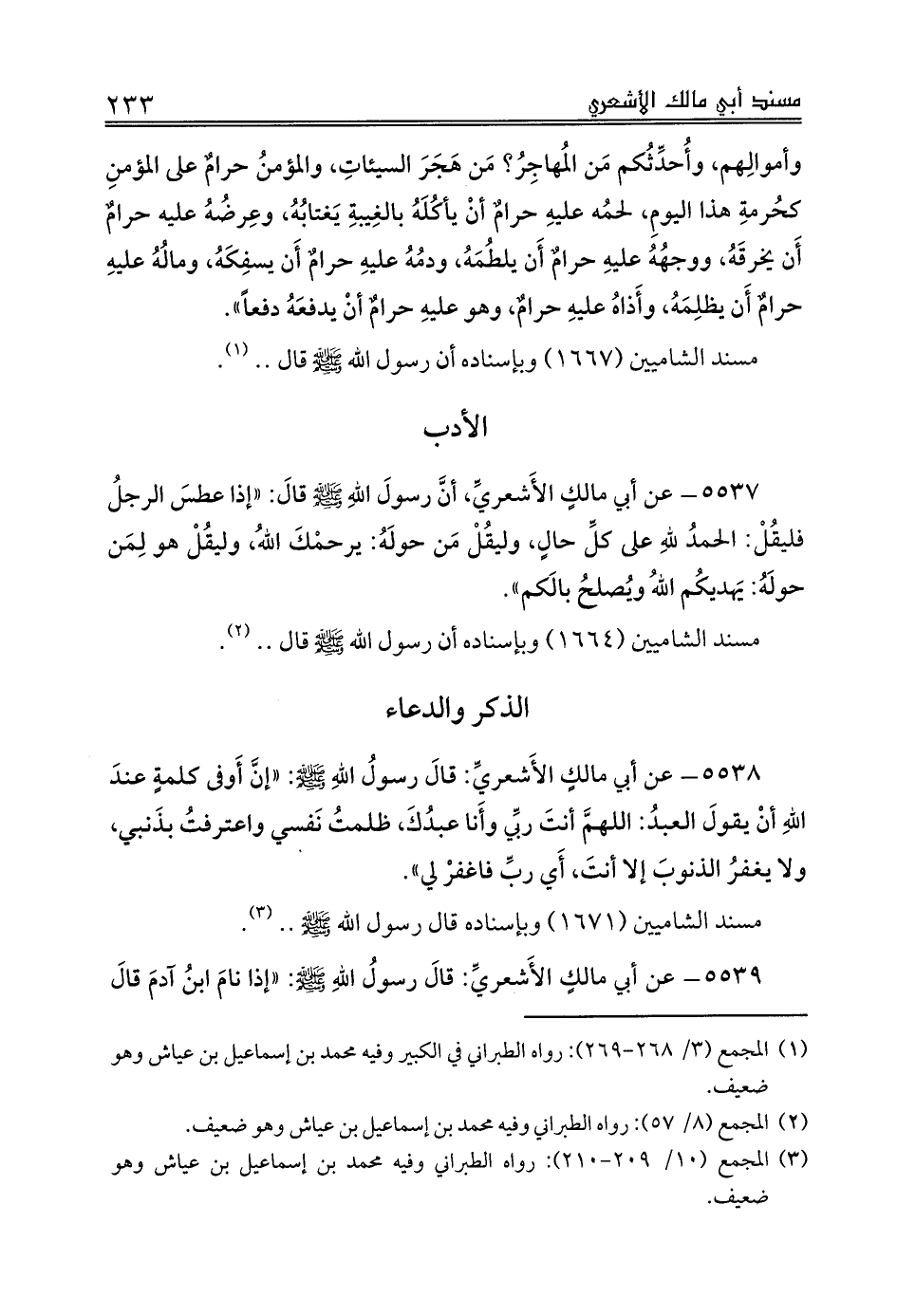 (¬3) المجمع (10/ 209 - 210): رواه الطبراني وفيه محمد بن إسماعيل بن عياش وهو ضعيف.