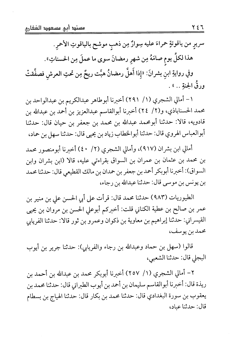 1 - أمالي الشجري (1/ 291) أخبرنا أبوطاهر عبدالكريم بن عبدالواحد بن محمد الحسناباذي، و (2/ 24) أخبرنا أبوالقاسم عبدالعزيز بن أحمد بن عبدالله بن قادويه، قالا: حدثنا أبومحمد عبدالله بن محمد بن جعفر بن حيان قال: حدثنا أبوالعباس الهروي قال: حدثنا أبوالخطاب زياد بن يحيى قال: حدثنا سهل بن حماد،