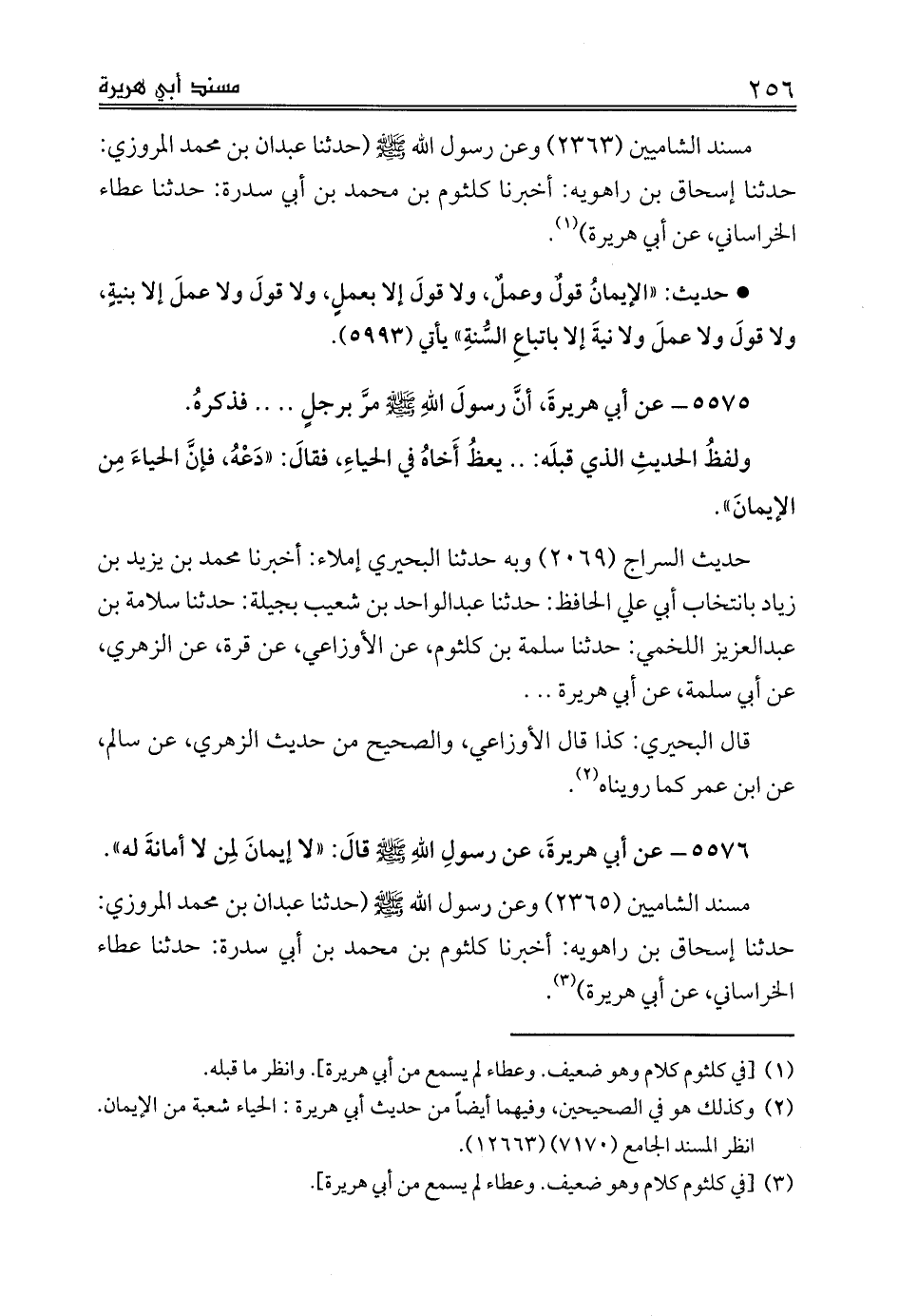 مسند الشاميين (2365) وعن رسول الله صلى الله عليه وسلم (حدثنا عبدان بن محمد المروزي: حدثنا إسحاق بن راهويه: أخبرنا كلثوم بن محمد بن أبي سدرة: حدثنا عطاء الخراساني، عن أبي هريرة) (¬3).