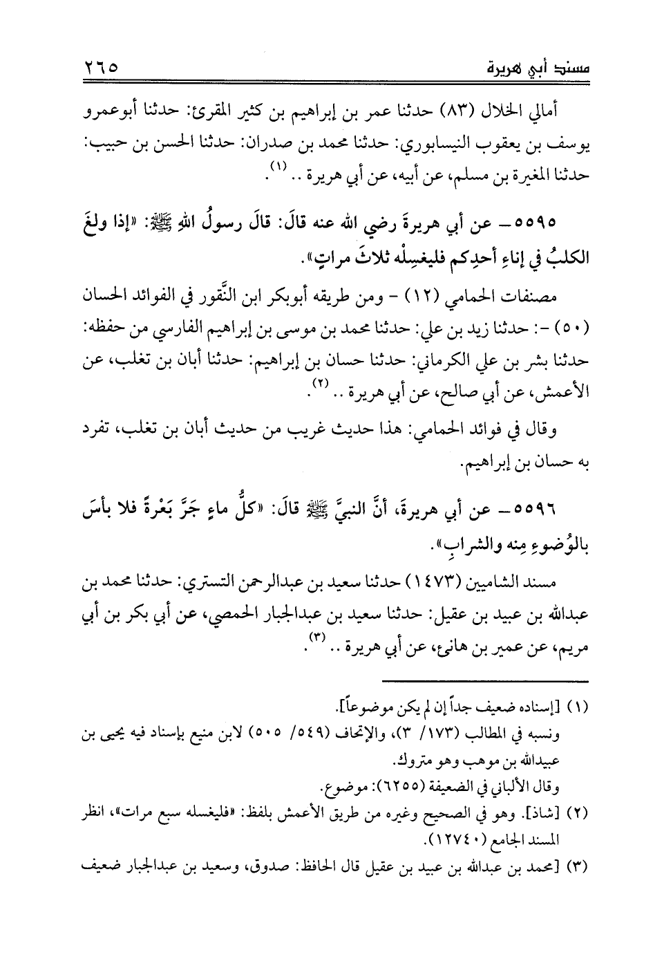 أمالي الخلال (83) حدثنا عمر بن إبراهيم بن كثير المقرئ: حدثنا أبوعمرو يوسف بن يعقوب النيسابوري: حدثنا محمد بن صدران: حدثنا الحسن بن حبيب: حدثنا المغيرة بن مسلم، عن أبيه، عن أبي هريرة .. (¬1).