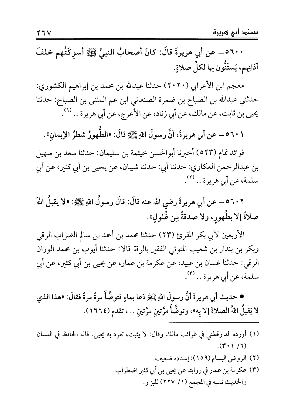 5601 - عن أبي هريرةَ، أنَّ رسولَ اللهِ صلى الله عليه وسلم قالَ: «الطُّهورُ شطرُ الإيمانِ».