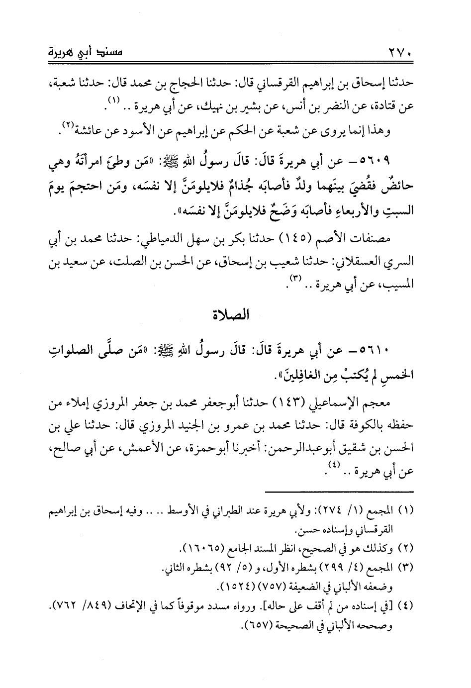 حدثنا إسحاق بن إبراهيم القرقساني قال: حدثنا الحجاج بن محمد قال: حدثنا شعبة، عن قتادة، عن النضر بن أنس، عن بشير بن نهيك، عن أبي هريرة .. (¬1).