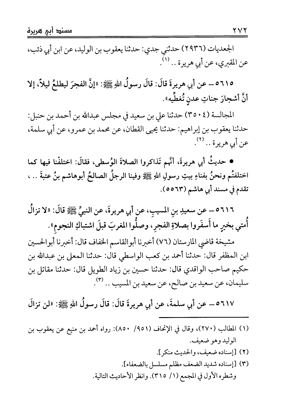 5616 - عن سعيدِ بنِ المسيبِ، عن أبي هريرةَ، عن النبيِّ صلى الله عليه وسلم قالَ: «لا تزالُ أُمتي بخيرٍ ما أَسفَروا بصلاةِ الفجرِ، وصلُّوا المغربَ قبلَ اشتباكِ النجومِ».