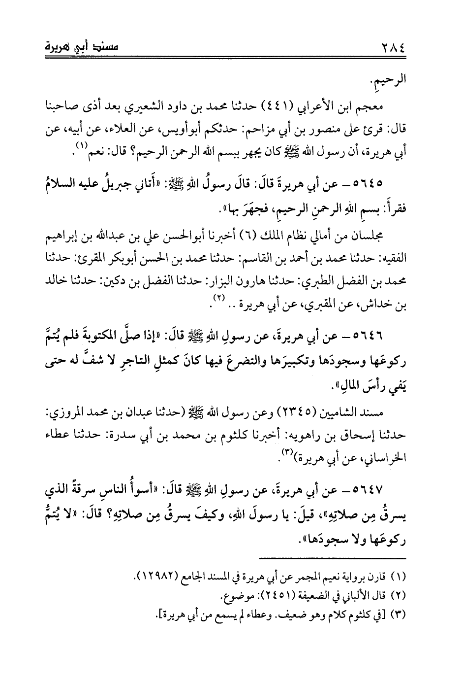 5645 - عن أبي هريرةَ قالَ: قالَ رسولُ اللهِ صلى الله عليه وسلم: «أَتاني جبريلُ عليه السلامُ فقرأَ: بسمِ اللهِ الرحمنِ الرحيمِ، فجهَرَ بها».