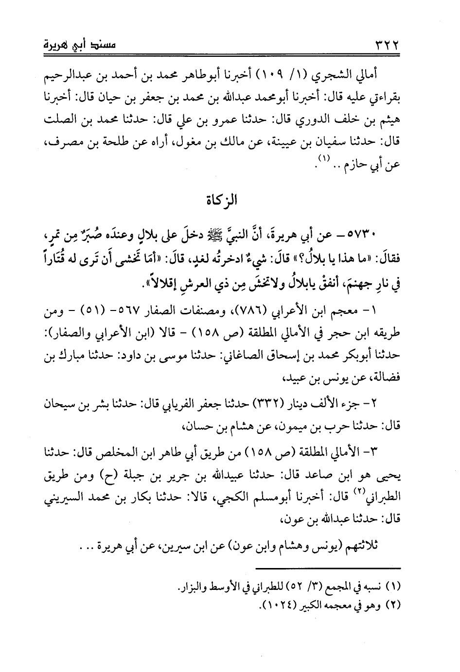 3 - الأمالي المطلقة (ص 158) من طريق أبي طاهر ابن المخلص قال: حدثنا يحيى هو ابن صاعد قال: حدثنا عبيدالله بن جرير بن جبلة (ح) ومن طريق الطبراني (¬2) قال: أخبرنا أبومسلم الكجي، قالا: حدثنا بكار بن محمد السيريني قال: حدثنا عبدالله بن عون،