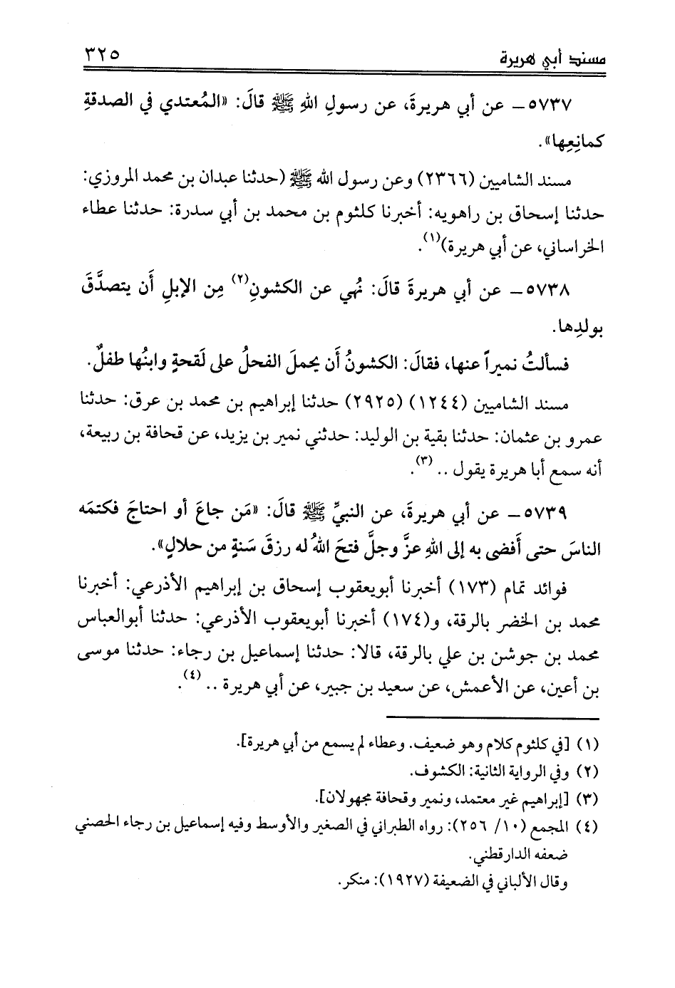 5738 - عن أبي هريرةَ قالَ: نُهي عن الكشونِ (¬2) مِن الإبلِ أَن يتصدَّقَ بولدِها.