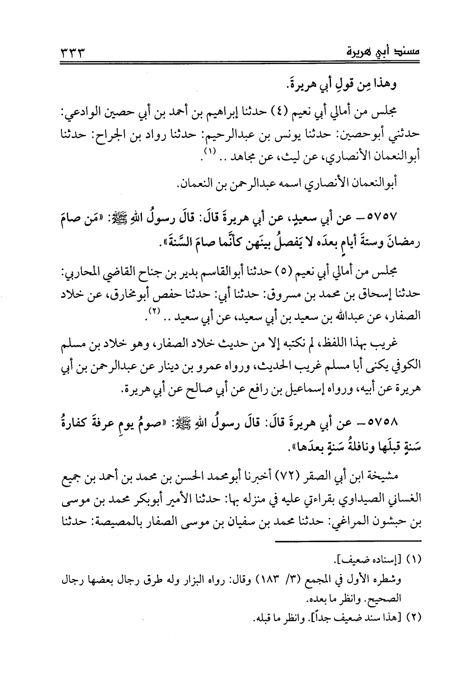 5758 - عن أبي هريرةَ قالَ: قالَ رسولُ اللهِ صلى الله عليه وسلم: «صومُ يومِ عرفةَ كفارةُ سَنةٍ قبلَها ونافلةُ سَنةٍ بعدَها».